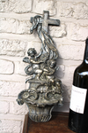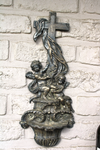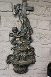 antique french cast iron angels holy water font crucifix41,5 x 17 cm