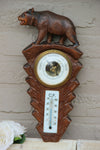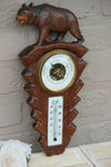 ery beautifull wood carved barometer black forest design with a bear vintage 1950's the bottom of glass thermo...