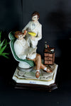 Gorgeous italian capodimonte porcelain group the hairdresser marked with crowned N on a wood basegood condition, slight wear...