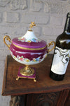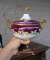 vintage italian alfa porcelain bowl centerpieceliddedfloral decorlion paws and putit cherub on top 23 cm wide handle to...