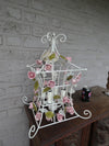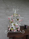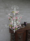vintage 70s italian chandelier lampmetal & porcelain flowerscage form very beautiful 46 cm height and 62 cm with...