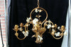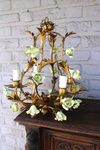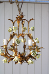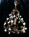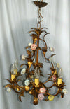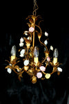 Gorgeous Mid century italian metal gold gilt chandelier1970sWith porcelain roses ( 2 are gone but is of course...