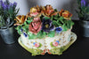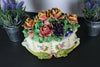 gorgeous vintage italian majolica centerpiece bowl lidded with encrusted floral decor and dolphins at base small nicks floral...