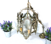 gorgeous italian metal & glass chandelier lantern with figural decor and glass you can place 3 e14 bulbs...