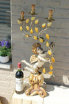 Large italian vintage table lampwith an angel putti wood carved polychrome 76.5 cm height  and 40 cm widest...