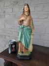 antique ceramic chalk statue of Saint eloy elooi 47 cm heightsome wear /traces see detailed pics1930s