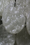 Gorgeous italian mid century ChandelierDesign by gino vistosiwith 36 plastic discs Completesome wear finish see pic1970s45 cm wide,...