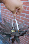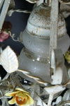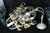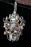 vintage french shabby chic chandeliermetal & porcelain flowers glass globe in middle where you can put 1 bulb...