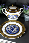 Vintage porcelain table clockwith romantic victorian scenemarked limoges cobalt blue porcelain works on a battery 1960/1970 37 cm...