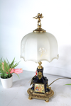 vintage T limoges marked table lampcobalt blue porcelainwith glass shade on topfigurine cherub very nice piece from 70sgood...