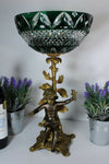 Gorgeous vintage belgian Bronze putti cherub with a val saint lambert crystal glass green bowl on topcrystal bowl...