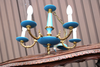 vintage chandelier from 1960brass & turquoise blue lacquered metal50 cm diameter and 35 cm height itself , with...