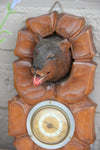 Vintage wood carved wall barometerwith a a black forest wood carved bear on top with glass eyes 19...