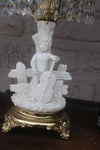 vintage 1970s porcelain white figural table lampwith a figurine playing instrument ( chip stick and top instrument )...