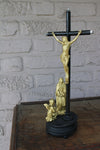 vintage 1970 wood  / metal calvary crucifix35 cm height
