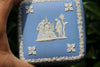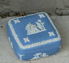 Wedgwood Blue Jasperware Trinket Boxliddedwith different putti angels scenes10 x 10 x 4.5 cmmarked1950s a real eye catcher ...