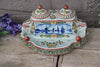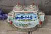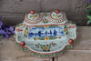 gorgeous Antique inkwell in belgian pottery with blue white delft sailboats dutch scene floral decors marked at base,...
