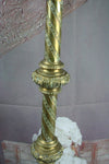 GORGEOUS piece from FRANCEReligious candleholderBrassat base plaques of i think joseph and maria  ( a third plaque is...