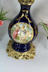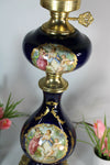 Vintage limoges cobalt blue porcelain table lampwith victorian romantic scenesglass shade on topis for e27 light bulb74 cm...