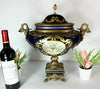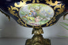 xl Limoges cobalt blue porcelain centerpiece liddedwith victorian decors front and backsidebronze frame with dragon handles, very special...