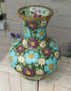 Gorgeous vintage italian glass vase with hand paint floral decorvery colourful and beautiful made in italy and signature...
