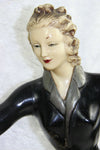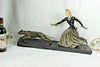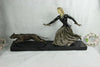 Antique French art deco Statue Spelter bronze on marble baselady with dog on a leash 77 cm lenght...