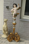 Stunning italian polychrome wood carved putti angel on a pedestalcame out of a church and i think it...