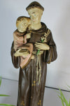 antique chalkware statue of saint anthony45 cm height repair head and some wear finish see detailed pics
