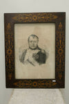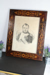 Antique 19thc CHARLES X wood carved inlay frame with a litho of napoleon behind glasssmall crack corner bottom...