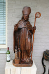 Top religious church antique SAINT NICHOLAS Wood carved , very heavy statue 1800s Came from the private collection...