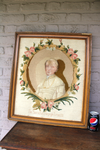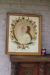 Antique french embroidery wall panelhandwork with a portrait of pope leo XIII some traces wear see detailed pics,...