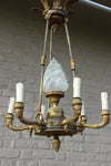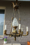 Antique French chandelier begin 1900s Empire design with bronze arms with portrait heads at the ends on top...