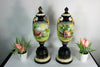 PAIR antique hand paint english faience vasesliddedwith cherub romantic scenes42.5 cm height1900sgood condition front and backside different scenes...