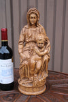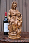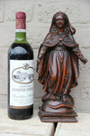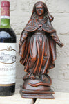 Antique Flemish 18th century wood carved madonna figurine statueon base is a snake 30.5 cm height is very...