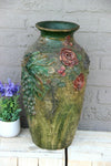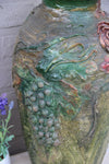 gorgeous flemish earthenware Vase from late 19th centurya rough feeling outside with relief fruit grapes and floral decoris...