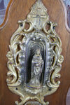 Antique FRENCH 1900 Holy water fontBrass /metal on a wood plaquevery nice exclusive piece you won't find often...