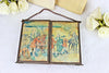 Gorgeous Antique Tryptich barber mirroris foldable inside is a mirror on each panel and outside has chromos with...