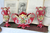 true beauty from franceart nouveau period barbotine vases garniture setwith a center piece and its matching vasesencrusted majolica...