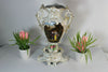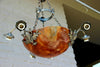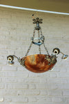 Gorgeous french Alabaster amber bowl Chandelier With caryatid heads 7 bulbs can be placed ( 6 on the...