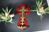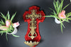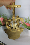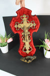 antique french crucifix holy water font on panel brass on red velvetis for wall hanging38 x 21 cm...