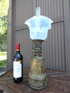 Antique rare to find oil lampcopper relief with saint vincentius glass shade on topgood condition,just the system for...