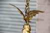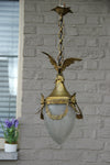 Stunning antique french pendant chandelierwith a bronze putti angel with a green patina2 tulip frosted glass shades1910-1920 francechandelier...