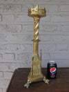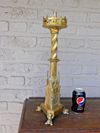 Gorgeous antique churchcandle holder neo gothic with lion crawling at base paws ( or dogs ? ) 47...