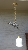 Gorgeous french antique bronze pendant lamp putti / angel in a rose bush , very detailed with flowers...