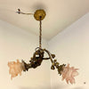 antique french bronze putti cherub chandelier pendant lampwas hanging in a parisian housegorgeous with pink glass paste shadesgood...