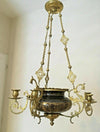 Antique French alabaster Chandelier with a large amber coloured alabaster bowl murano floral / fruit Glass decoration rim...