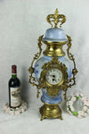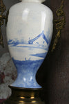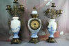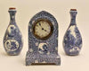 Blue white Pottery Clock set with matching candelabrasall with landscape scenes in blue white with typical...
