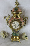 A gorgeous clock set with matching side urnswith encrusted majolica floral decor side urns are 26 cm height...