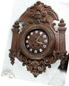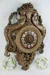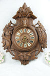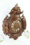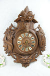 Antque BLACK FOREST WOOD CARVED CLOCKvery nice carving with hunting trophies like birds / fishon top a deer...