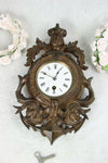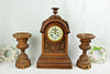 Antique French wood carved clock setwith matching side candle holderswith puttis angels clock is 45 cm height and...